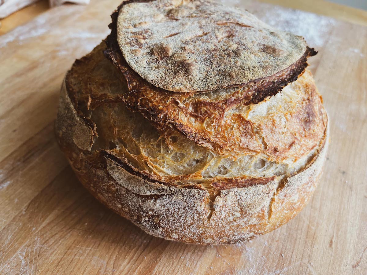 sourdough bread on a cutting board